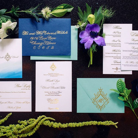 Spot calligraphy, digital lettering, custom venue illustrations and envelop addressing created to complement invitation designs without taking over the full suite.